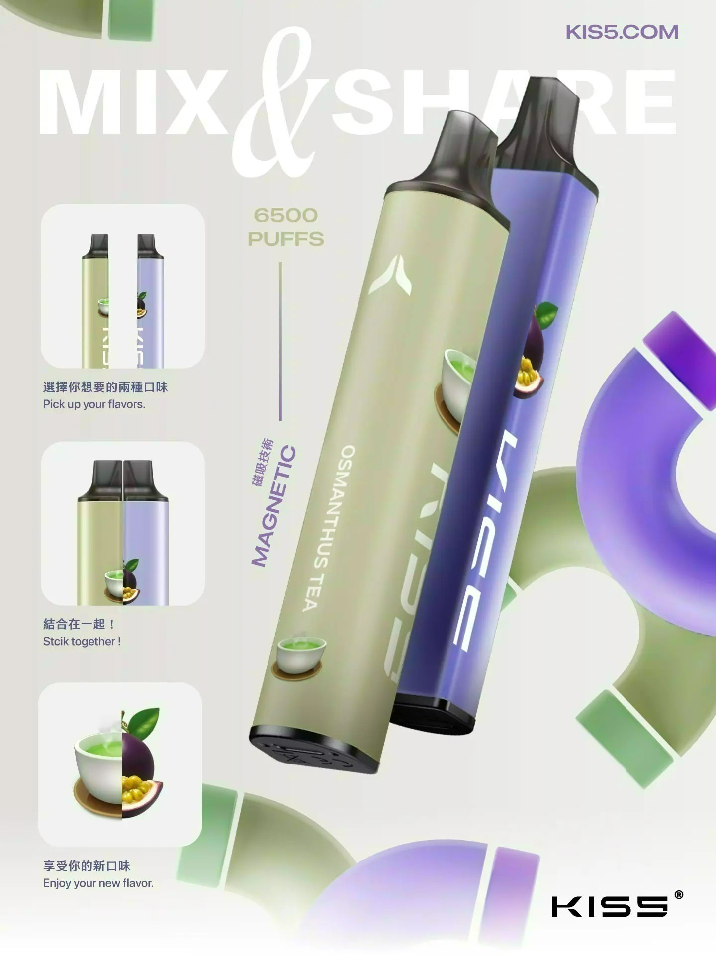 選擇KISS一次性霧化器,享受12種精選口味的自由組合,體驗78種一次性電子菸風味的無限可能。